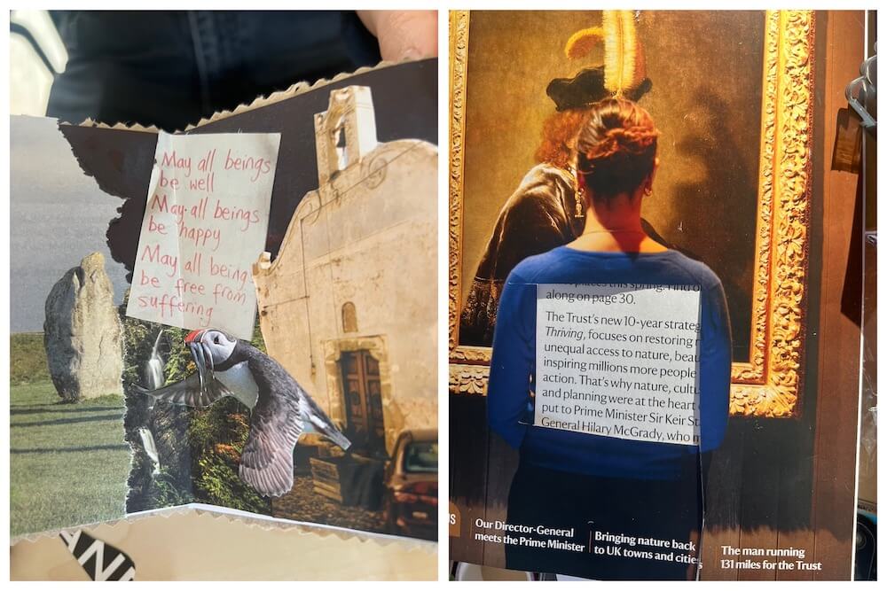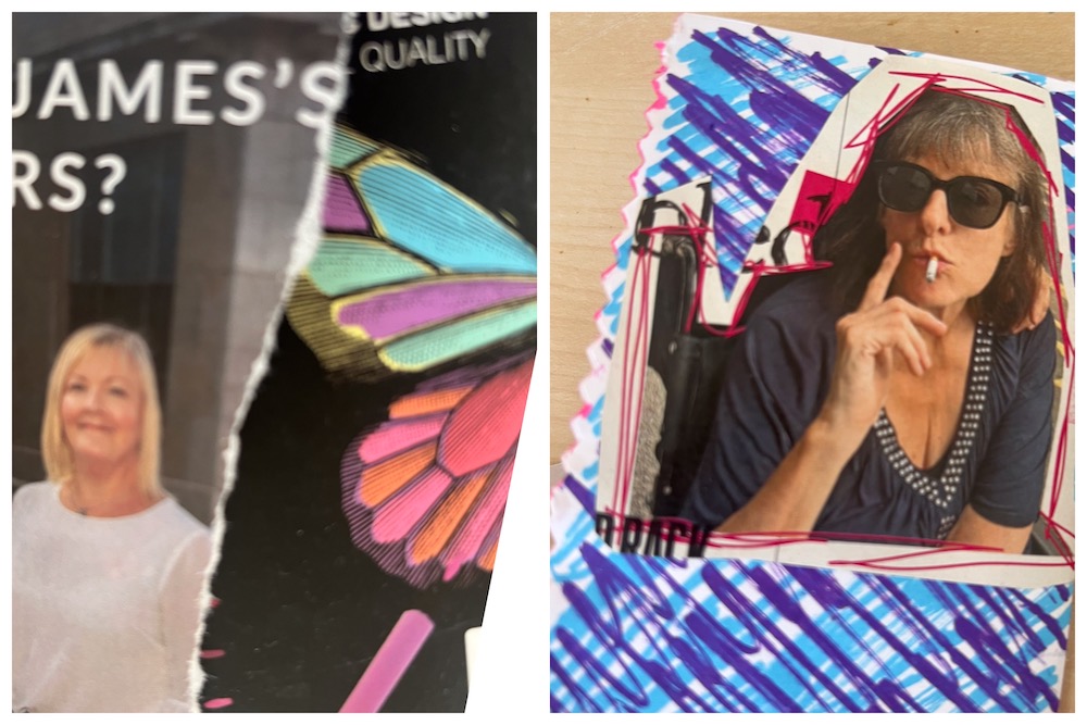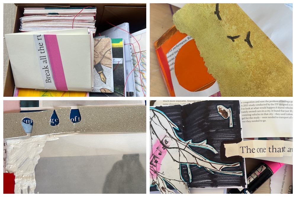 Zine-making gives us something to focus on together. You are not trying to perform. You are arranging, choosing, noticing, cutting, sticking, talking.