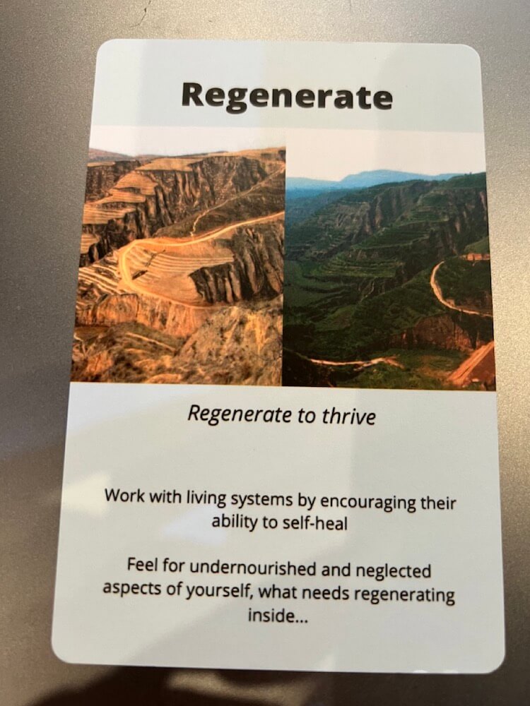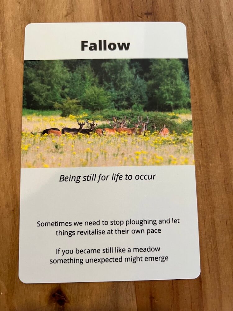 Exactly. She didn’t explain them much at all. She simply invited us to choose one of her CArds for Life and sit with it. We shared silence with the card first, and then took turns speaking about how it landed for us.